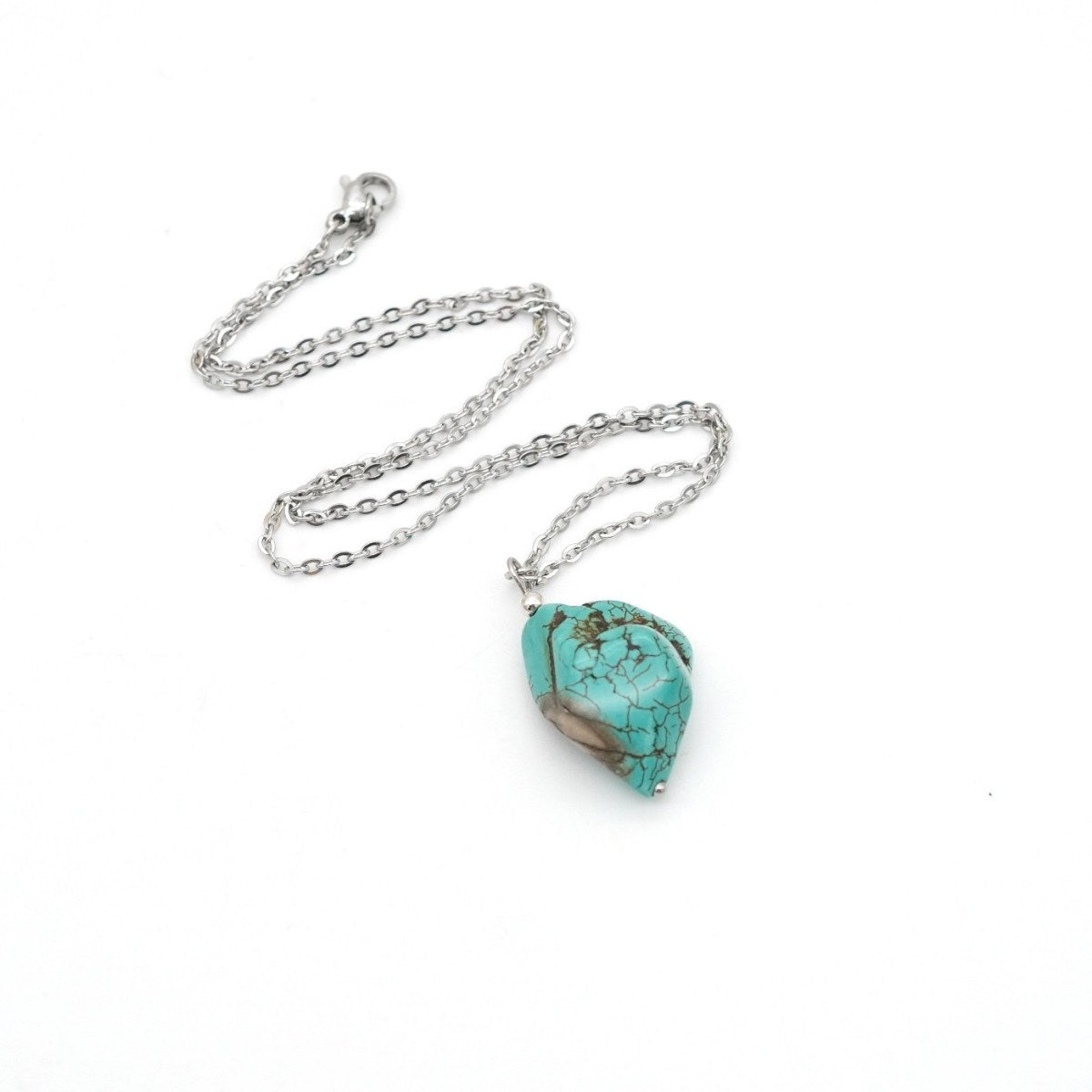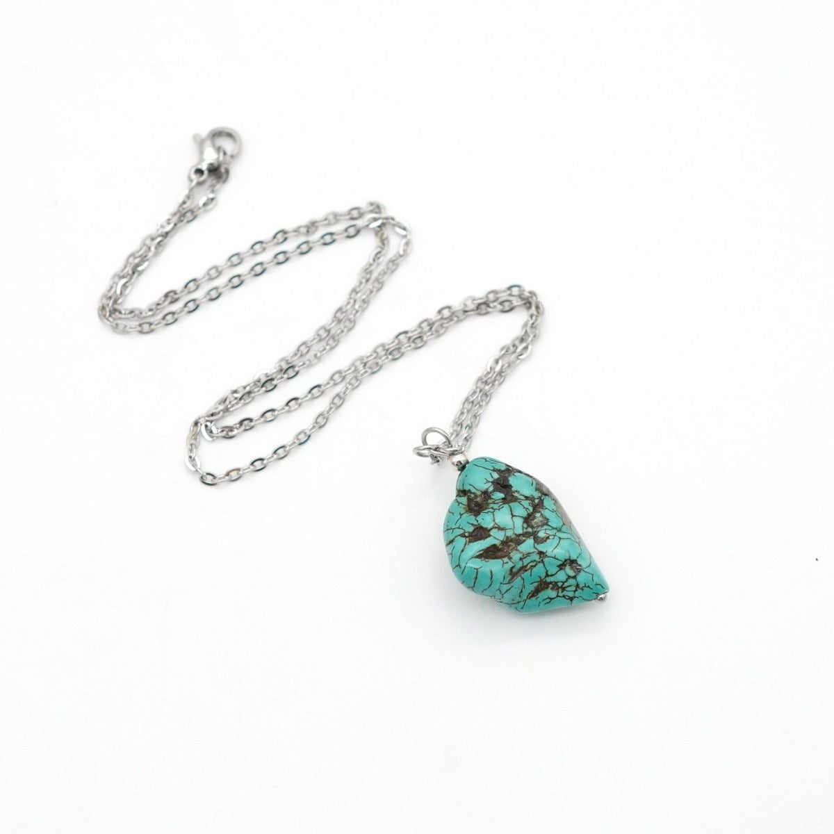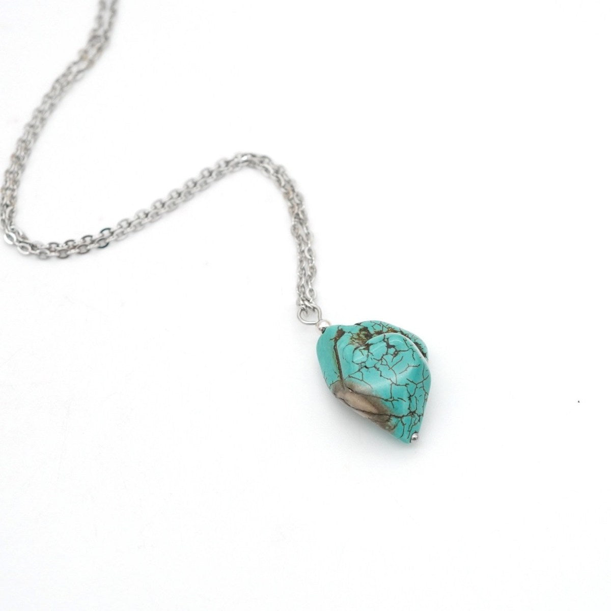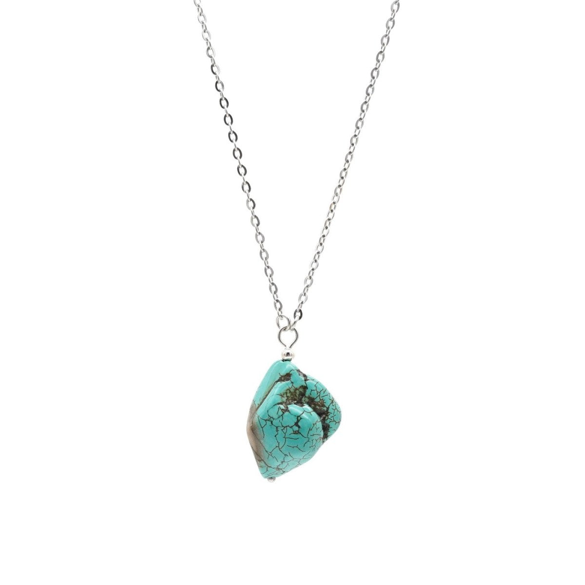 Halskette mit natürlichem Türkis-Anhänger und Edelstahlkette Edelstahlfarben